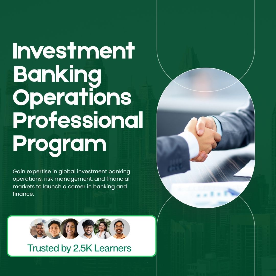 The Investment Banking Operations Professional Program program is designed to prepare learners for rewarding careers in global investment banking and financial services. With a focus on trade life cycle, risk management, compliance, and financial markets, this program bridges the gap between theoretical finance knowledge and practical industry skills.