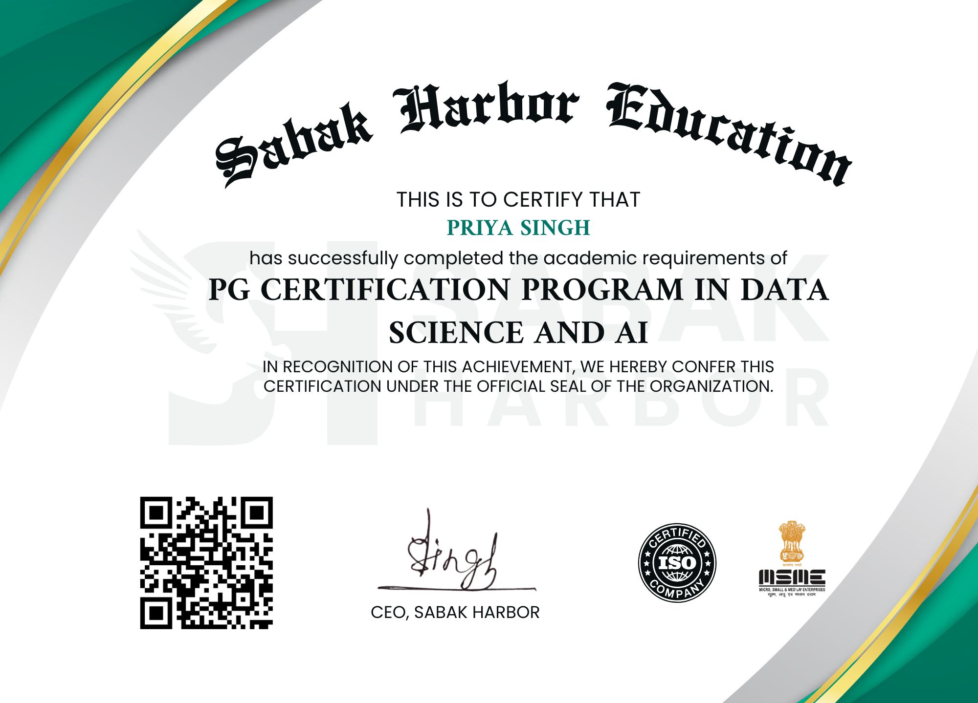 Upon successful completion of our Post Graduate Certification Program in Data Science and Artificial Intelligence, you will receive: