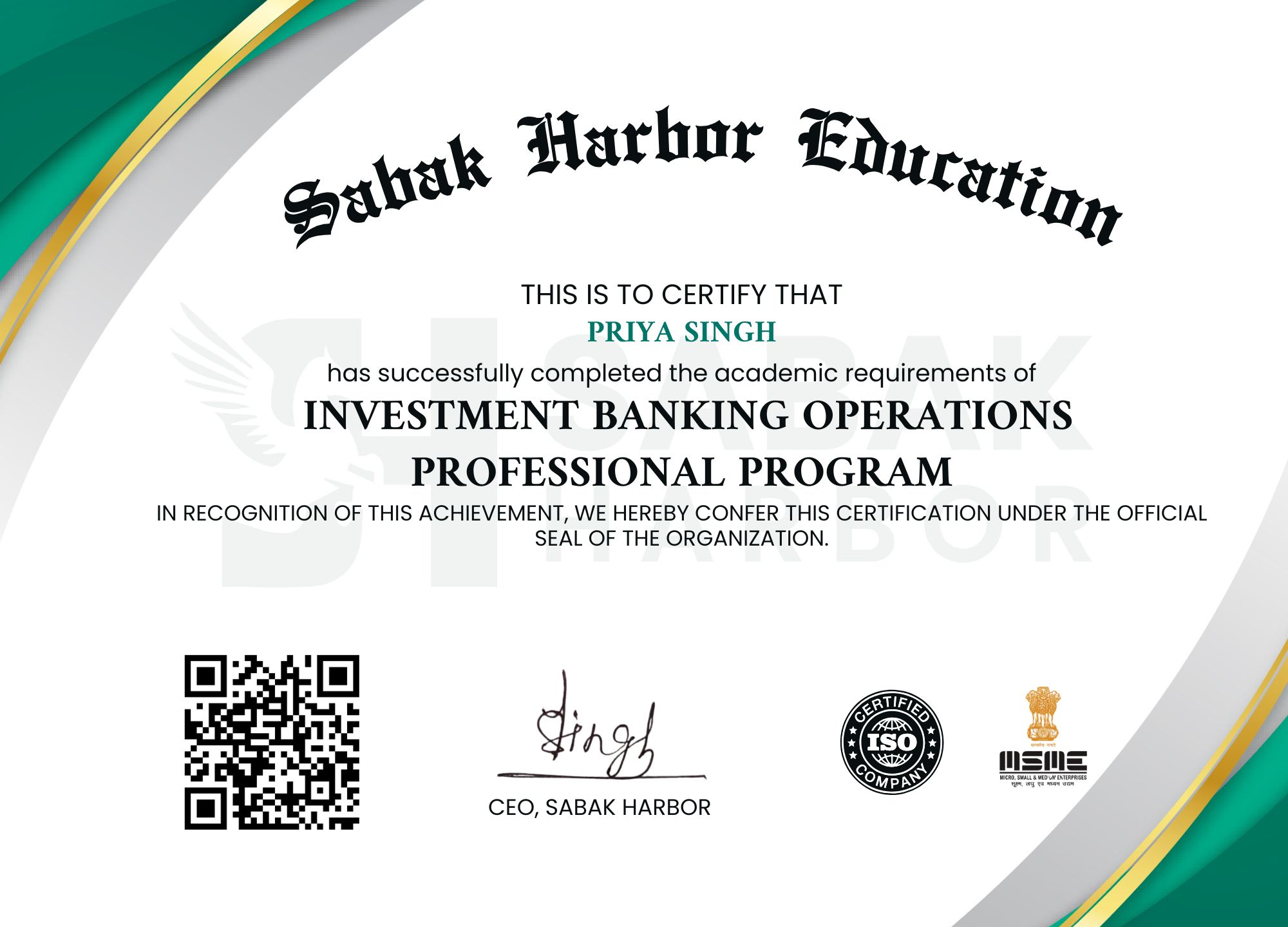 Upon successful completion of our Investment Banking Operations Professional Program, you will receive: