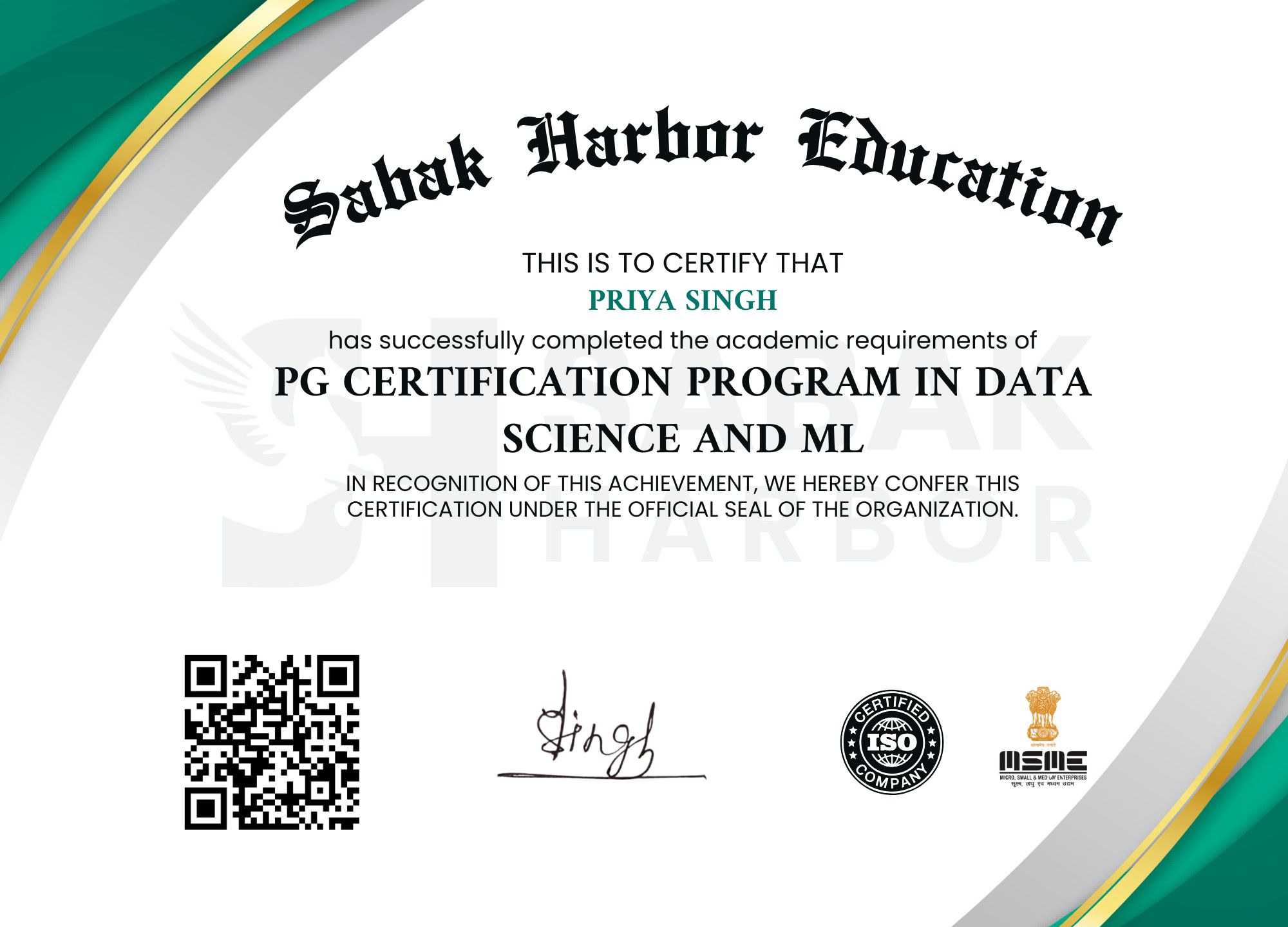Sabak Harbor’s Post Graduate Certification Program in Data Science and Machine Learning is designed to equip ambitious learners with the skills needed to excel in today’s data-driven world. By combining practical training, real-world case studies, and expert mentorship, the program helps bridge the gap between academic knowledge and industry demands. Tailored for fresh graduates and early-career professionals (0–3 years of experience), this program builds strong foundations in statistics, data analysis, and machine learning while enhancing your problem-solving and analytical thinking skills.