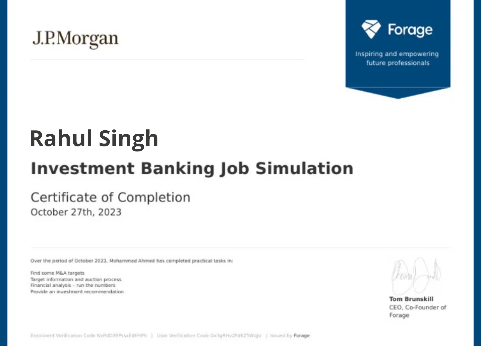 - J.P. Morgan Investment Banking Certification: A globally recognized certification validating your expertise in investment banking, financial modeling, valuation, and capital markets.